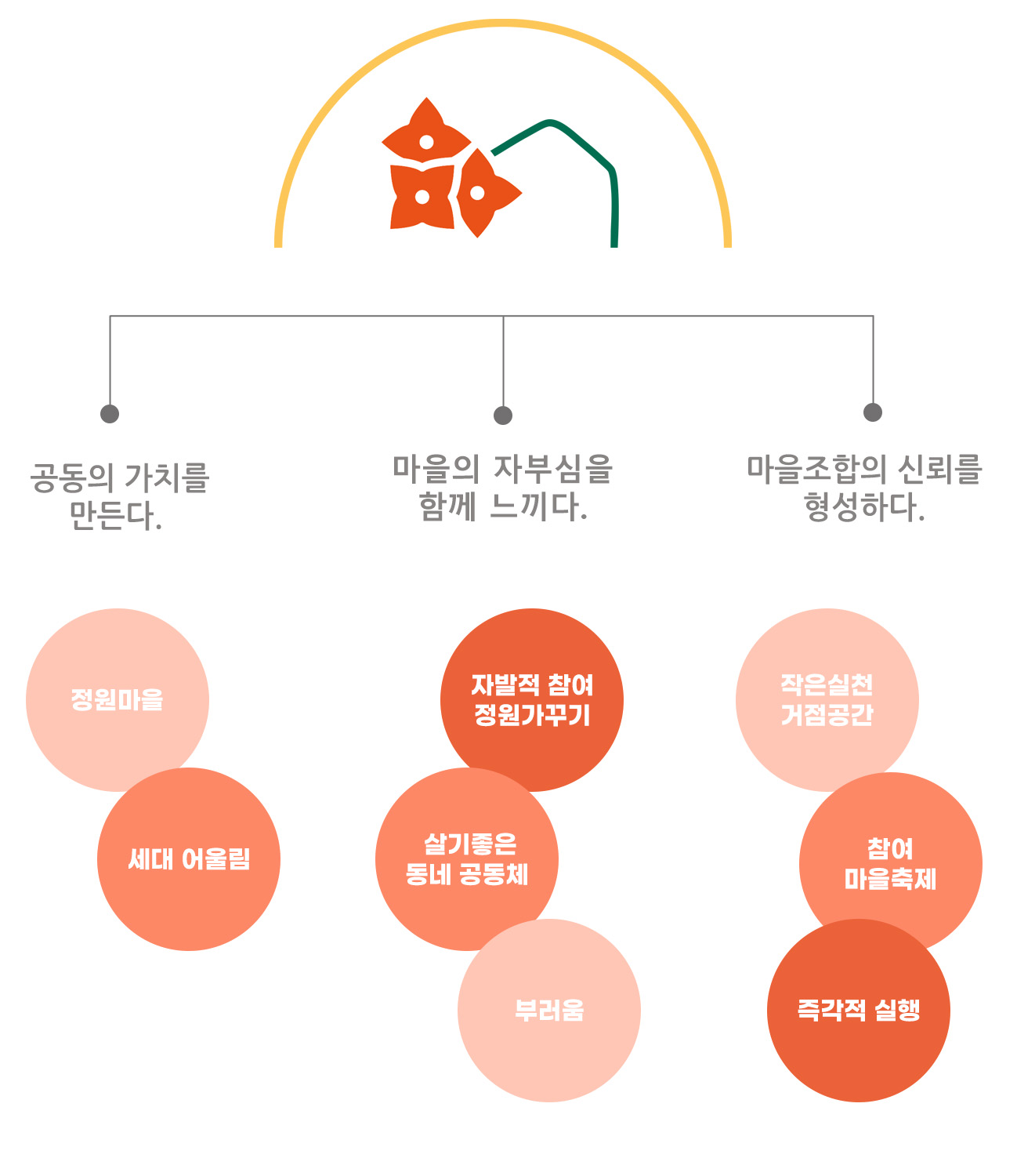 - 마을정원의 확대와 지속적인 관리를 위하여 계절별 정원 수목 식재 및 전정 등의 활동을 합니다.